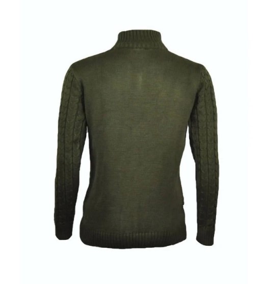Unisex zelený "copánkový" svetr  z vysoce kvalitního a příjemného materiálu 50 % vlna / 50 % akryl.