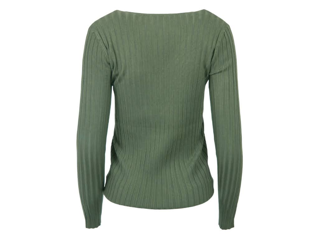 Dámský žebrovaný svetřík v hráškově zelené barvě je z velmi příjemného jemného materiálu. Díky velké pružnosti je svetřík v univerzální velikosti.