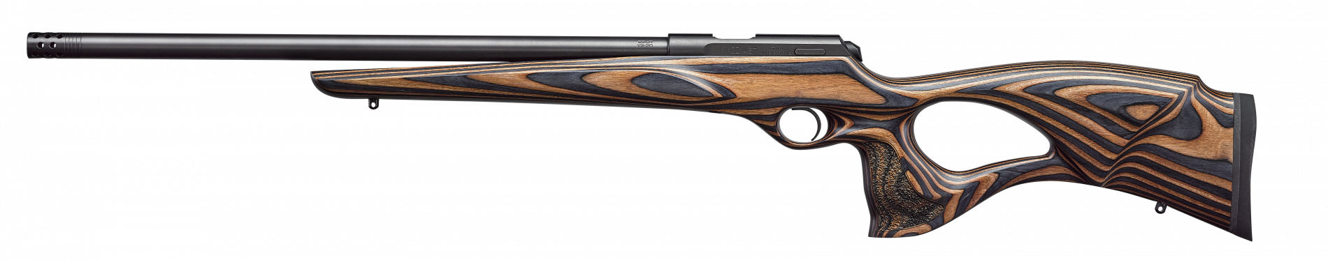 Perfektní ergonomie, originální elegance. Za tak lichotivou charakteristiku tento model vděčí pažbě typu thumbhole z vysoce pevného, šedo-hnědého laminovaného dřeva, k jejímž netradičním prvkům patři integrovaný lučík. Sofistikovaný design pažby umožňuje pohodlné ovládání praváky i leváky.