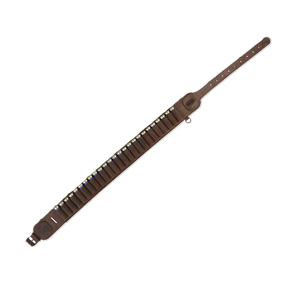 Kožený brokový nábojový pás, pojme 25 nábojů ráže 12, nebo 16, což zajišťuje dostatečnou zásobu munice pro celý lovecký den.