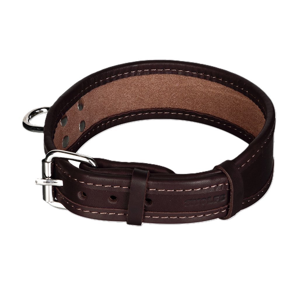 Robustní barvářský obojek vyrobený z prémiové hydrofobní kůže, vhodný pro větší plemena psů.