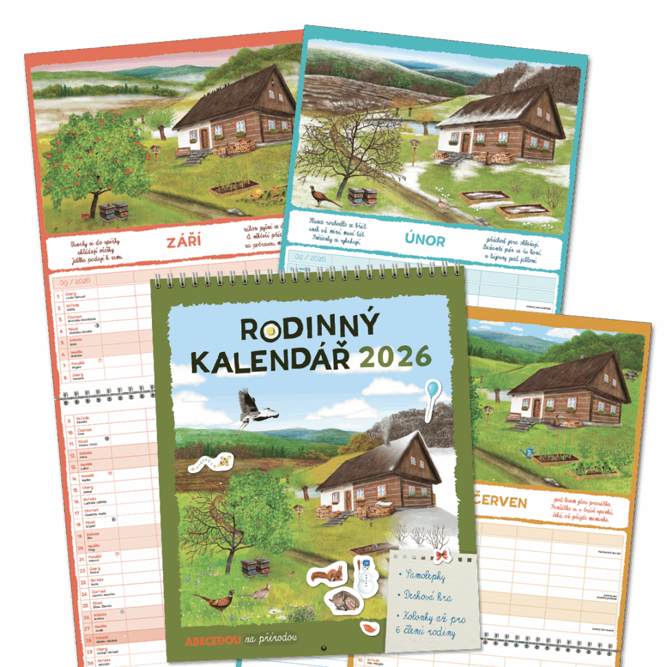 Rodinný nástěnný kalendář Abecedou za přírodou 2026 není jen obyčejný kalendář. Je to do detailu promyšlený rodinný kalendář propojený se vzděláváním dětí. Velké obrázky v každém měsící tentokrát představují chaloupku a její okolí v období právě probíhajícího měsíce . Kalendář je doplněn o samolepkové archy. Můžete si tak dozdobit obrázky v kalendáři, školní sešit, dopis…. nebo cokoli, co vás zrovna napadne.