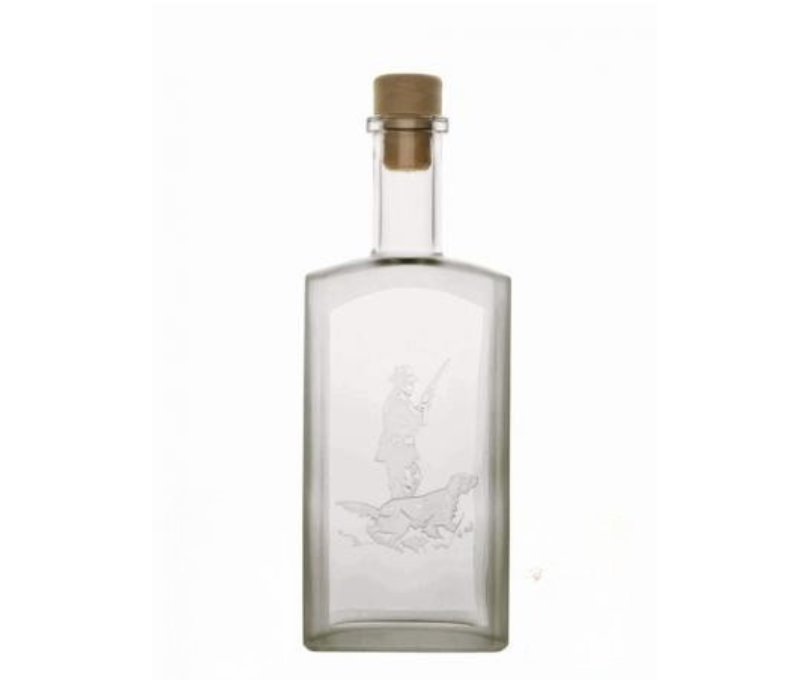 Láhev s broušeným motivem myslivce se psem o objemu 0,5 l.